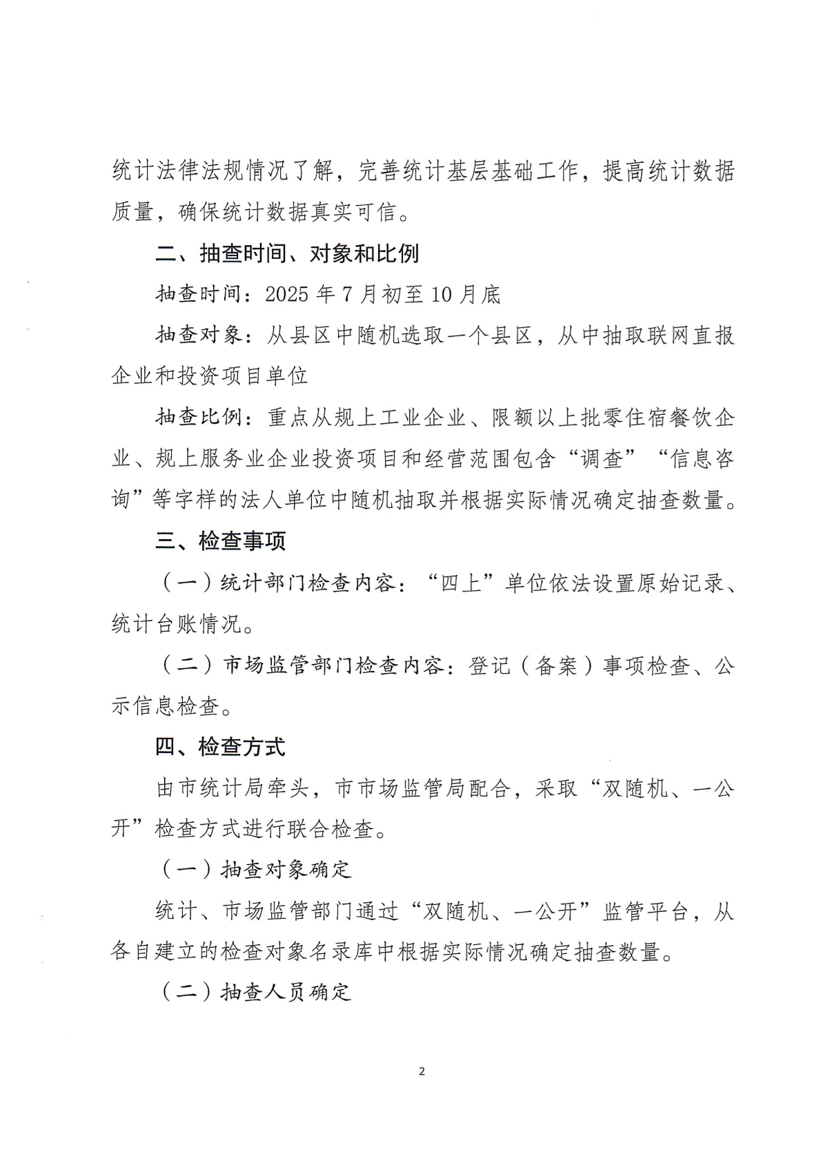 宿州市2025年度对全市联网直报企业和投资项目单位开展“双随机、一公开”部门联合抽查工作方案