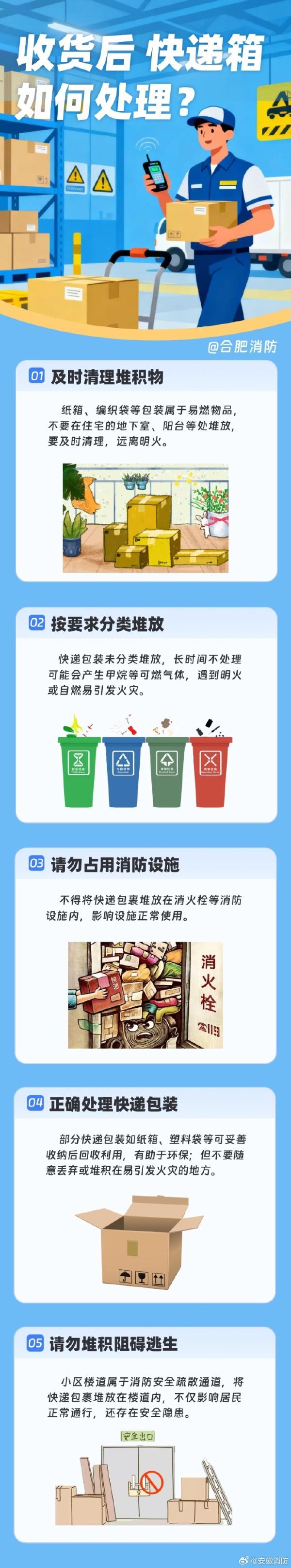囤货季快递拆不停,家里杂物可别乱堆!快递箱堆楼道、堵通道可万万使不得!千万别跟快递小哥说“先放消火栓吧”!……安全细节做到位,快乐才能更持久~更多细节戳图了解~